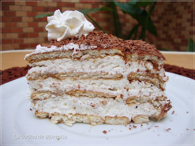 Un pastel de galletas clásico, muy sencillo, inspirado en el tiramisú pero con un origen más humilde, cuya base es un intenso sabor a café, que puedes poner descafeinado, si lo prefieres.